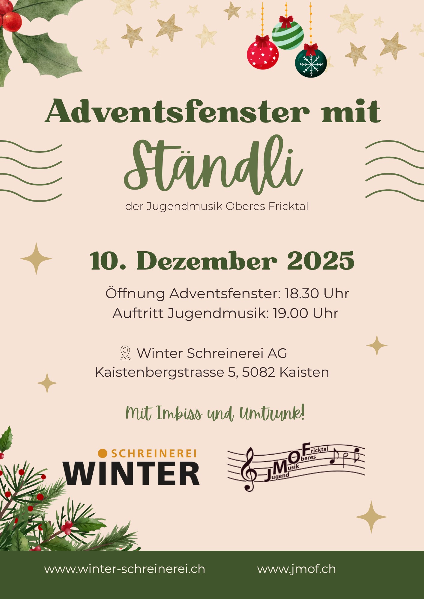 mit Ständli der Jugendmusik Oberes Fricktal um 19.00Uhr